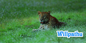 Wilpattu National Park is located 26 km north of Puttalam (approximately 180 km north of Colombo) spanning from the northwest coast inland towards the ancient capital of Anuradhapura (50 km to the east of the park). It boasts an impressive variety of flora in huge expanses of forest, and varied wildlife, including deer, elephants, wild boar, sloth bears and leopards. Wilpattu is a fairly thick dry zone jungle interspersed with a number of flood plain lakes banked with delicate white sands. |